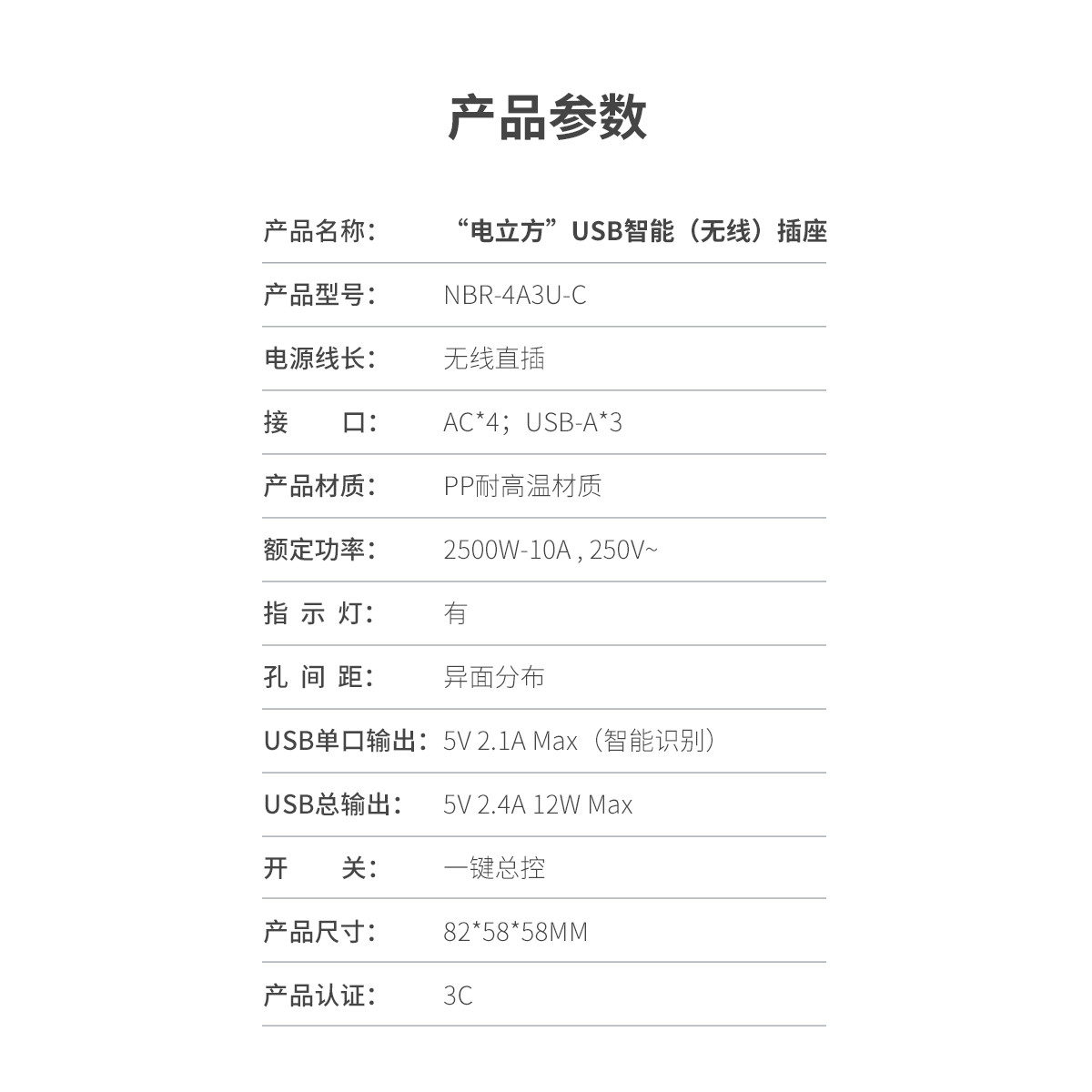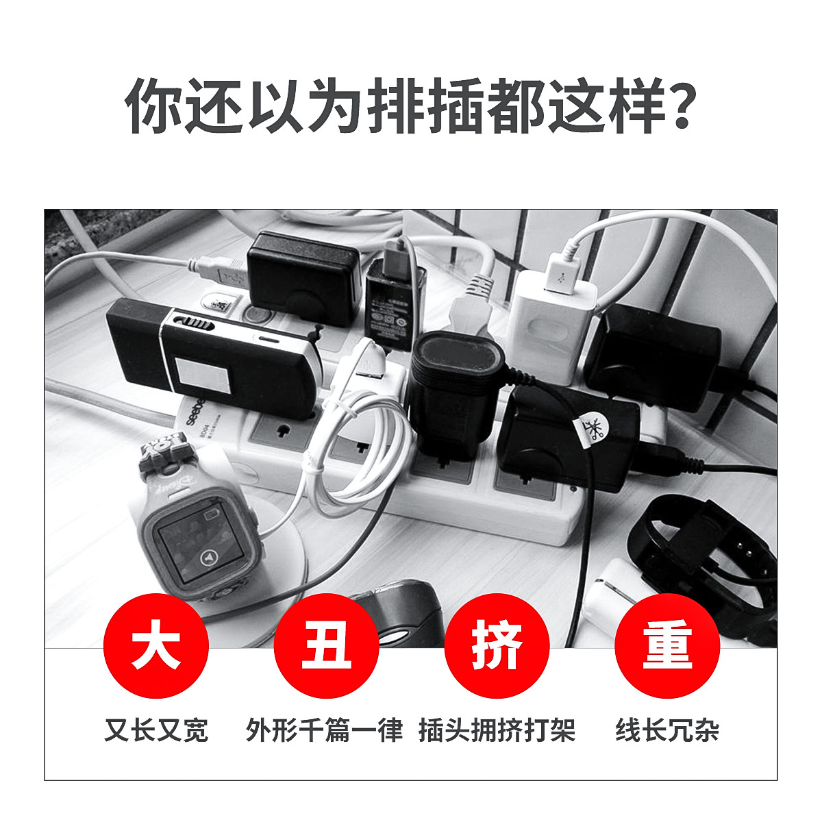 電立方2500W大功率4 AC口+3 USB排插(帶總控開關)