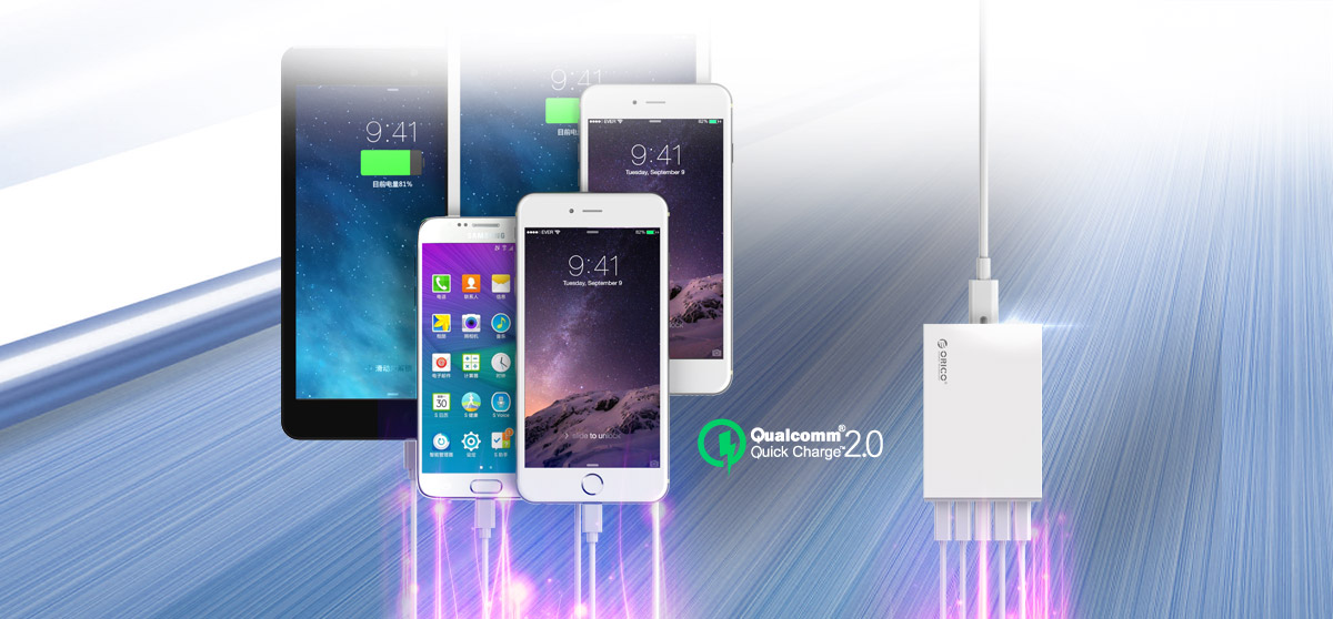 為了實現更智能的充電操作,ORICO QSL-5U采用電流控制和管理模式,配備USB智能充電芯片,可自動識別充電設備,智能匹配適合充電方案,平板、手機、移動電源、Ipod、MP4等各種5V設備,Supercharge口都可以自動偵測,給予設備更快的充電電流。