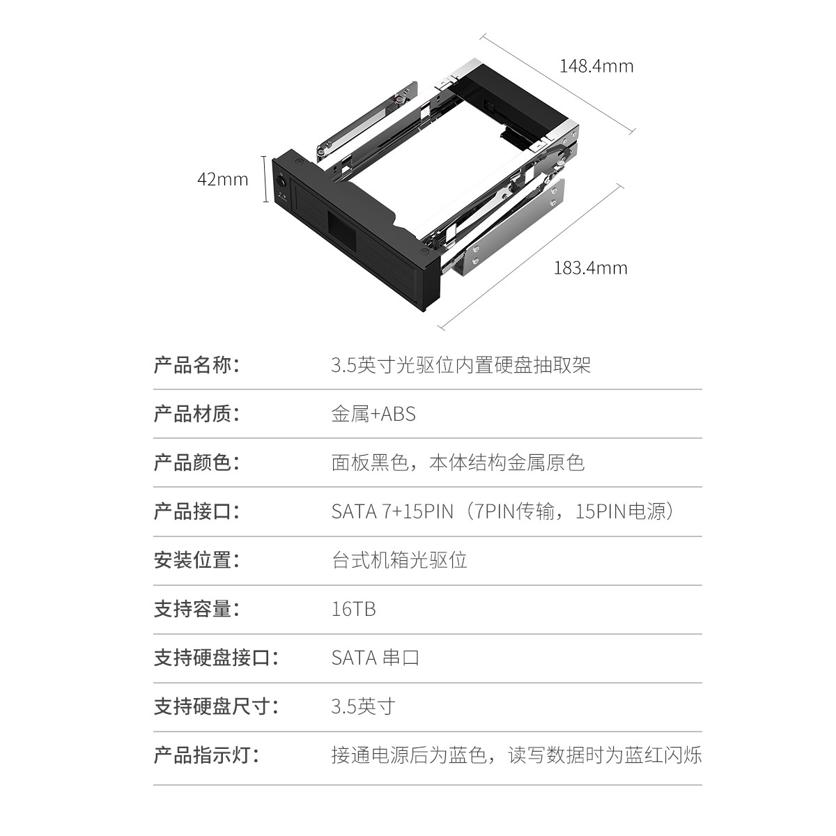 安全內置,便捷抽取,3.5英寸SATA串口適用