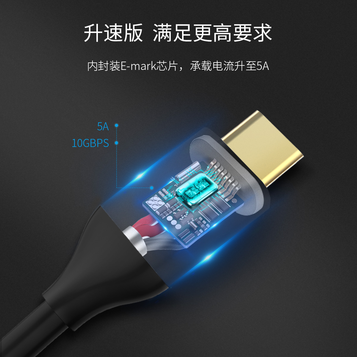 10Gbps速度Type-C to C快充數(shù)據(jù)線(E-mark升速版)
