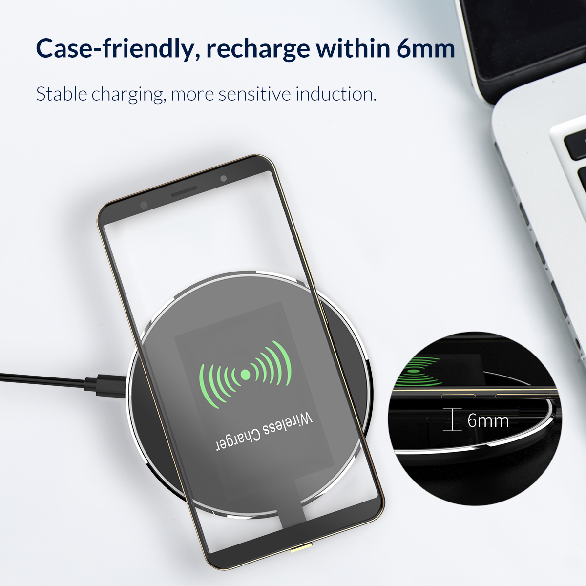 即放即充,采用純銅大線圈,充電更效率,6mm感應效距離,感應更靈敏,支持智能充電