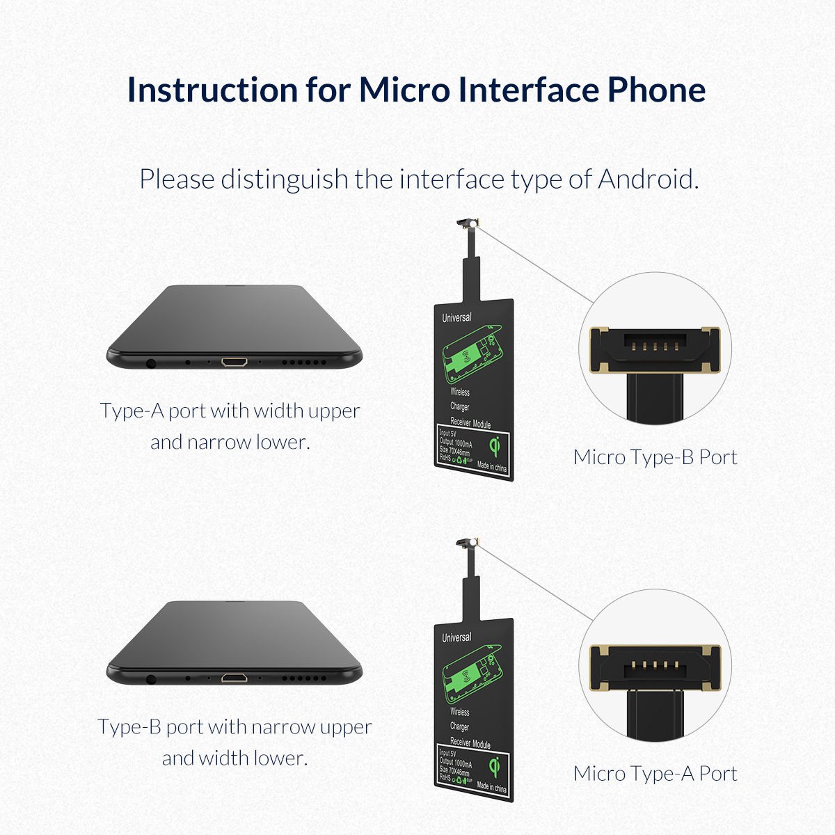 安卓手機MIRCO正面接口無線充接收器(三星/華為黑色)